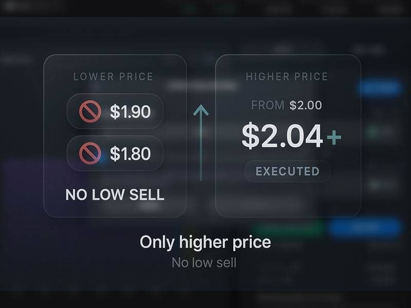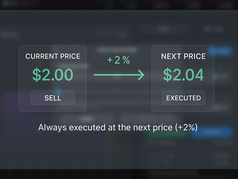 For example, if you press SELL at $2.00, the sale will be executed at the next price of $2.04.